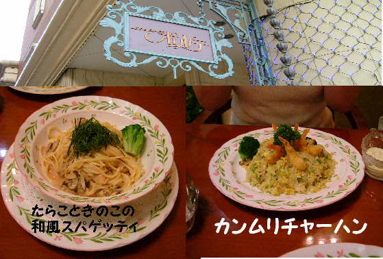 べりえんこさんがパスタ、しぃがピラフを食べました
