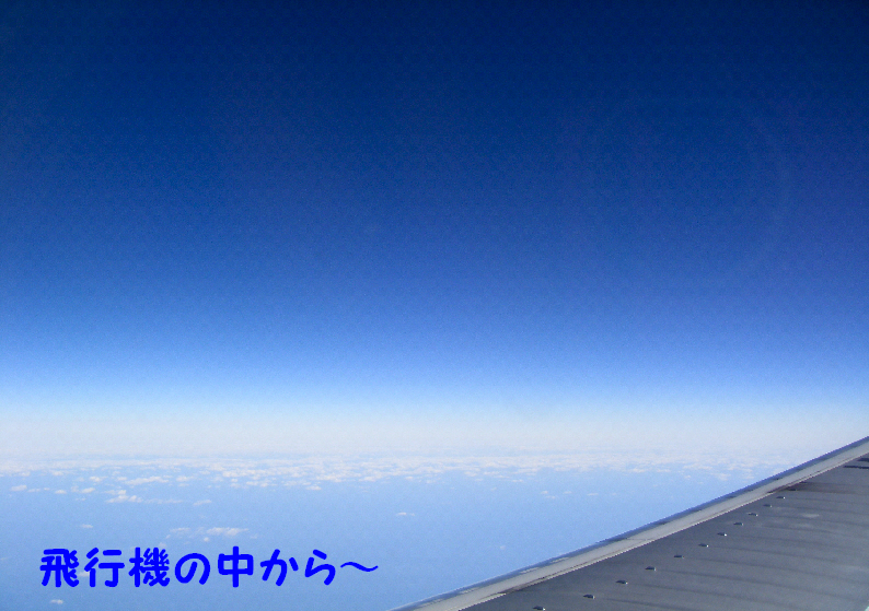 行きは夜だったので真っ暗だったけど、帰りはまたキレイな空の上でした
